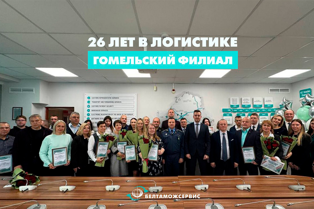18 октября 2025 года Гомельский филиал РУП «Белтаможсервис» отметит 26-летие со дня своего основания. Сегодня состоялось торжественное мероприятие, посвященное этому событию.