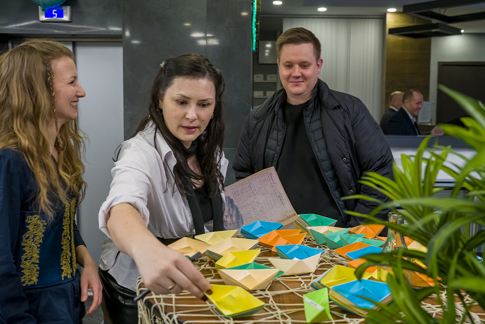 Именные кораблики; выбор курса дня, шуточный рейтинг имен по бортовому журналу; фотозона в морском стиле — с сундуком сокровищ, штурвалом и пиратской символикой – всё это напомнило, что в нашем коллективе работают не просто коллеги, а настоящая команда, где ценят, поддерживают и умеют создавать праздник друг для друга.