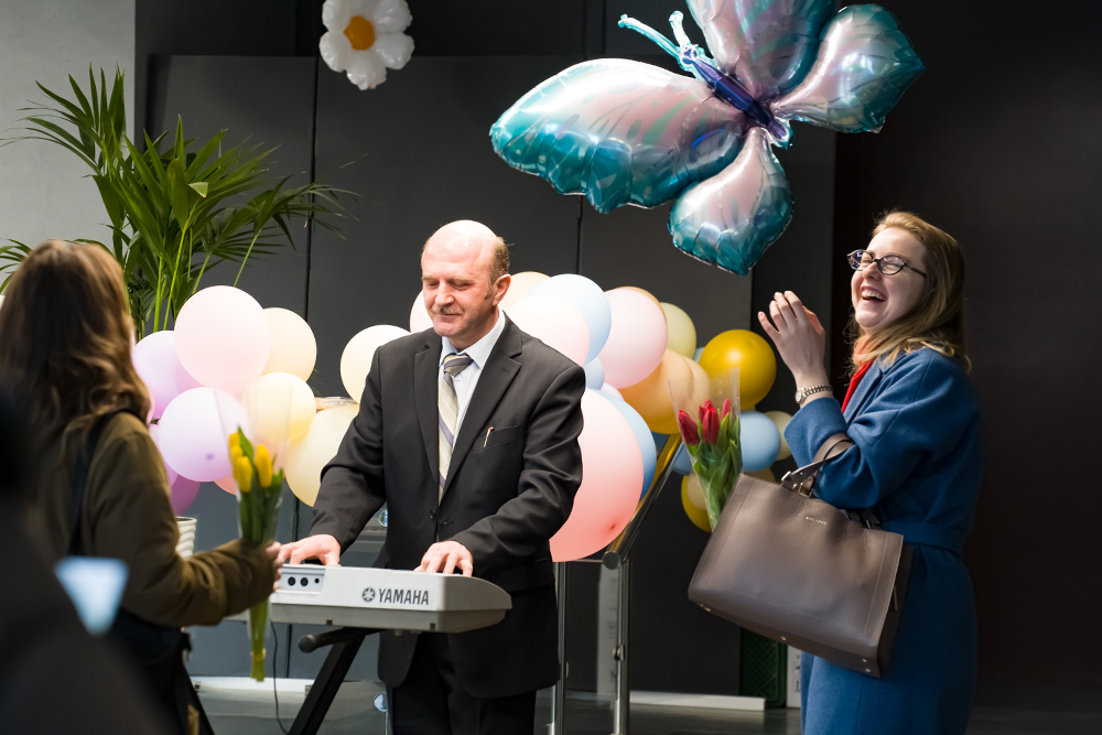С самого утра холл центрального аппарата наполнился не только цветами и весенним настроением, но и волшебными звуками синтезатора. Кто бы мог подумать, что в нашем коллективе скрывается такой талант?!