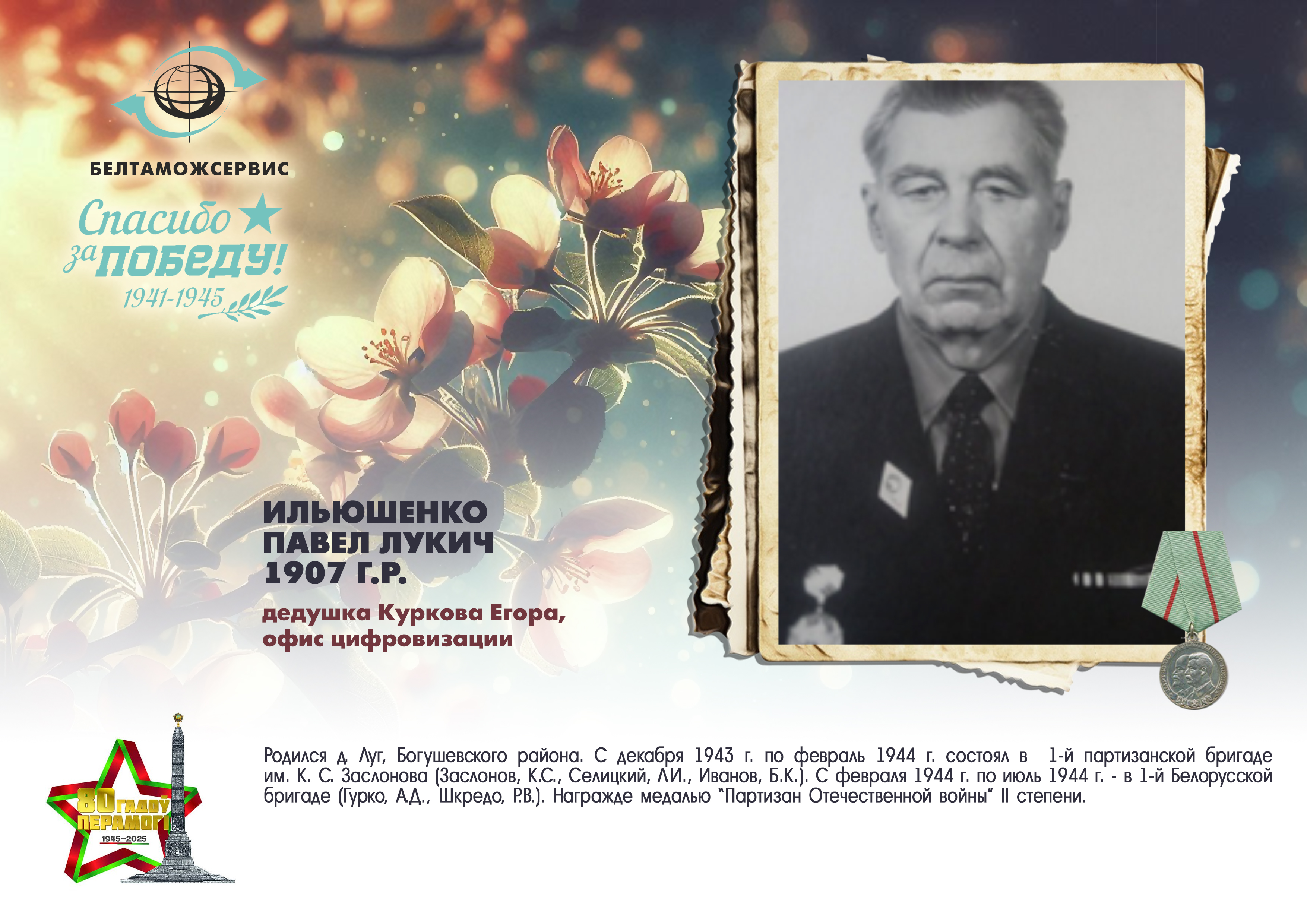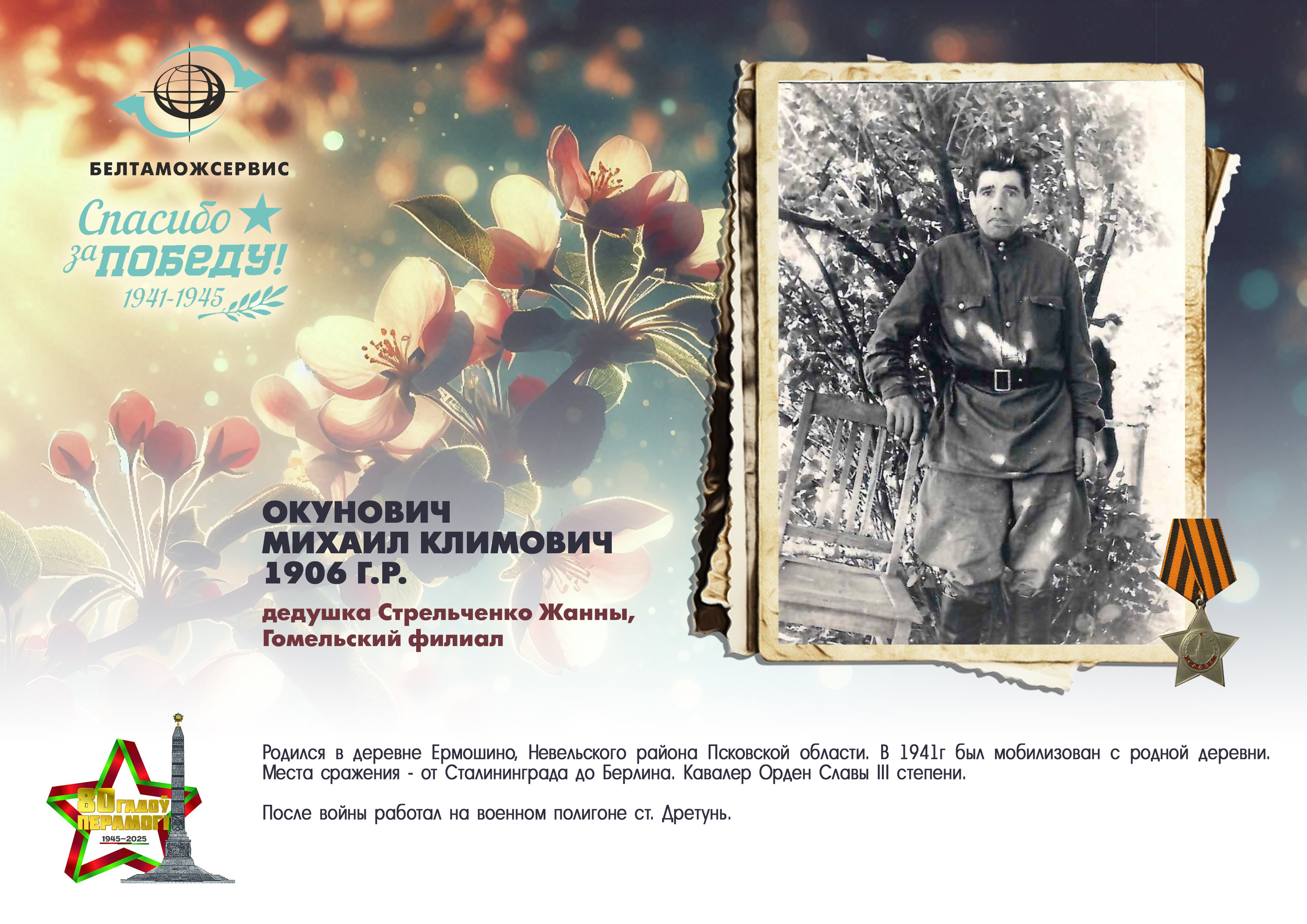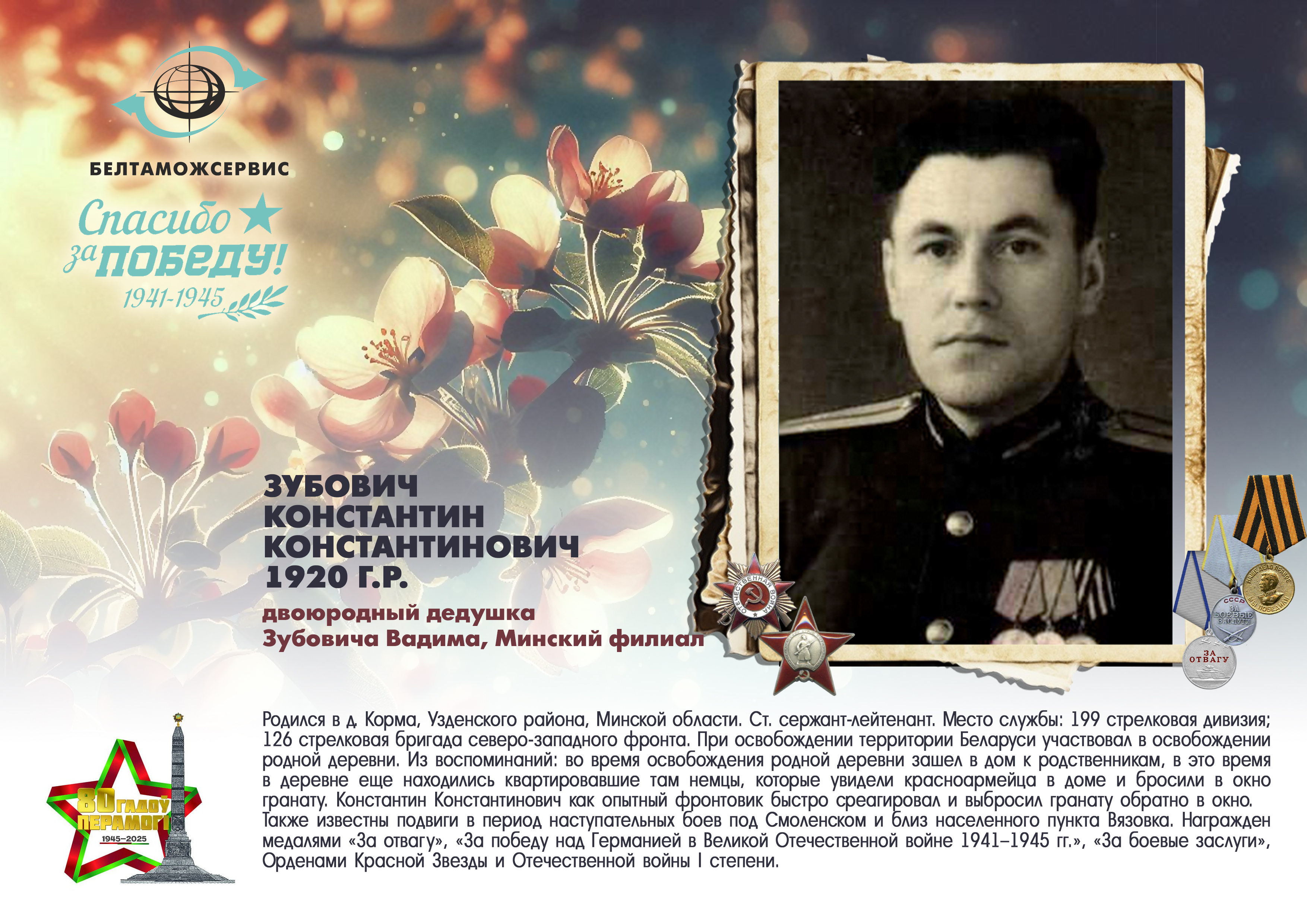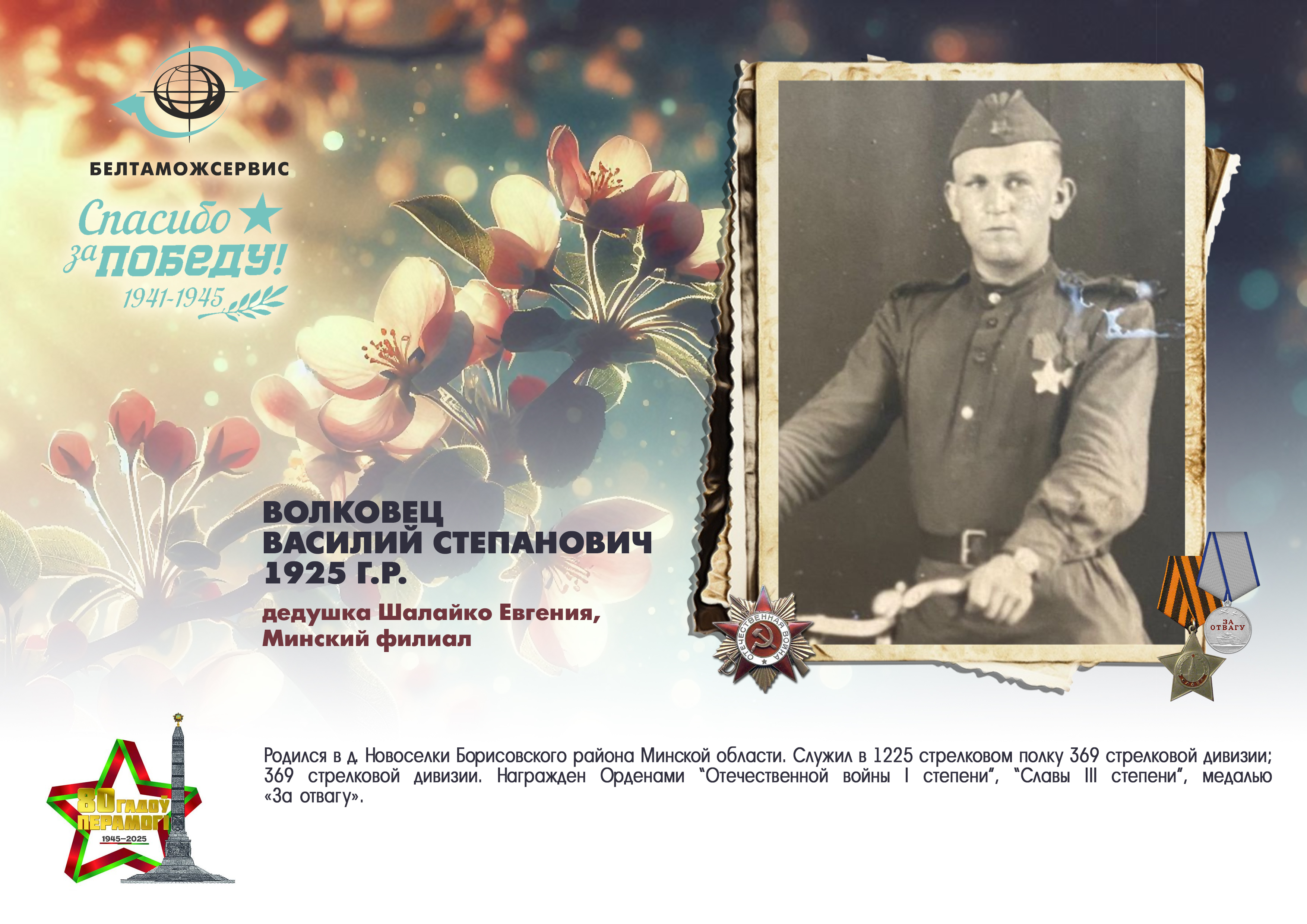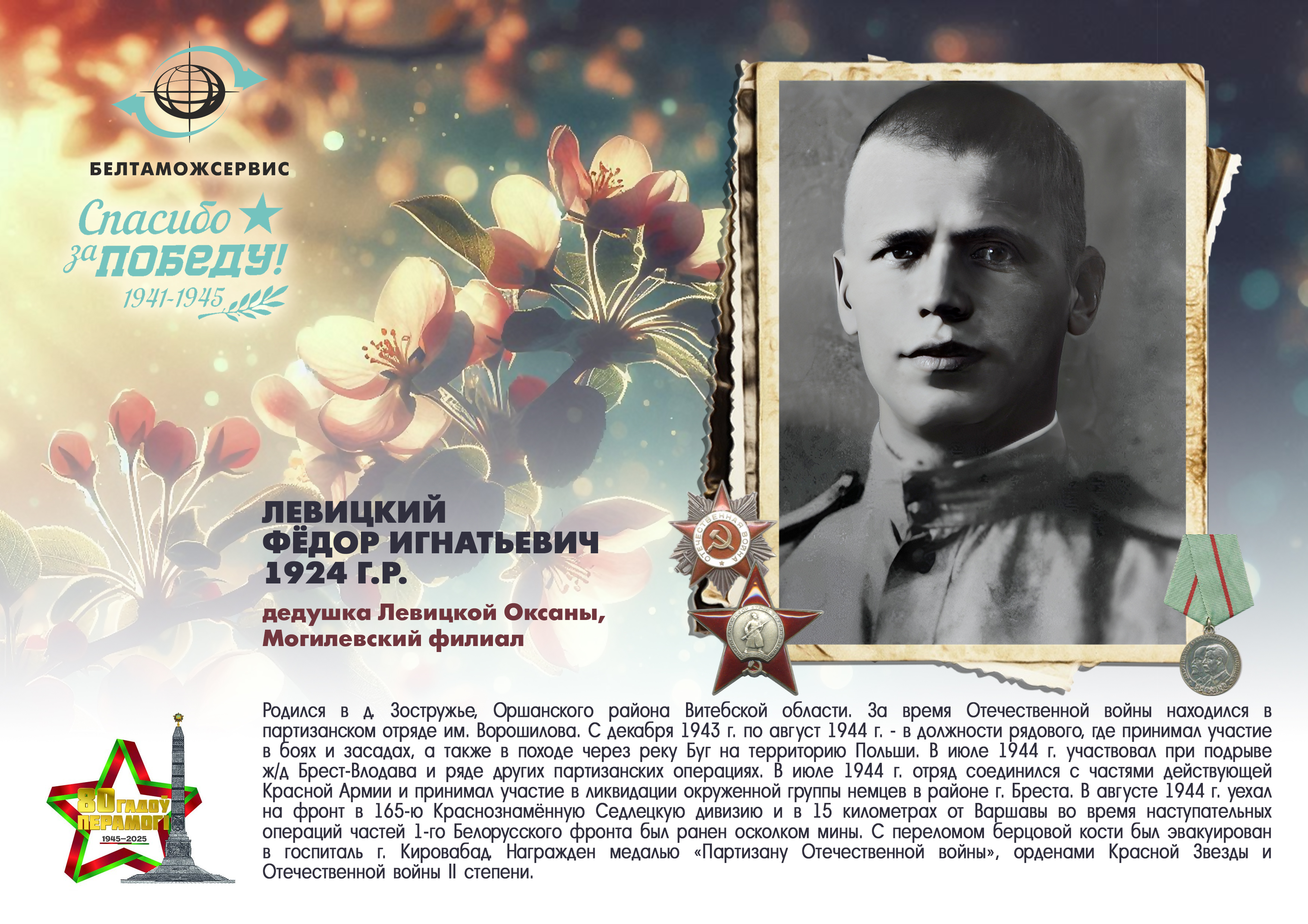 Пережитая трагедия, память о своих родных и гордость за их героические подвиги – в электронной выставке «Знают и помнят потомки: 80 лет Великой Победы», которую подготовили работники РУП «Белтаможсервис».