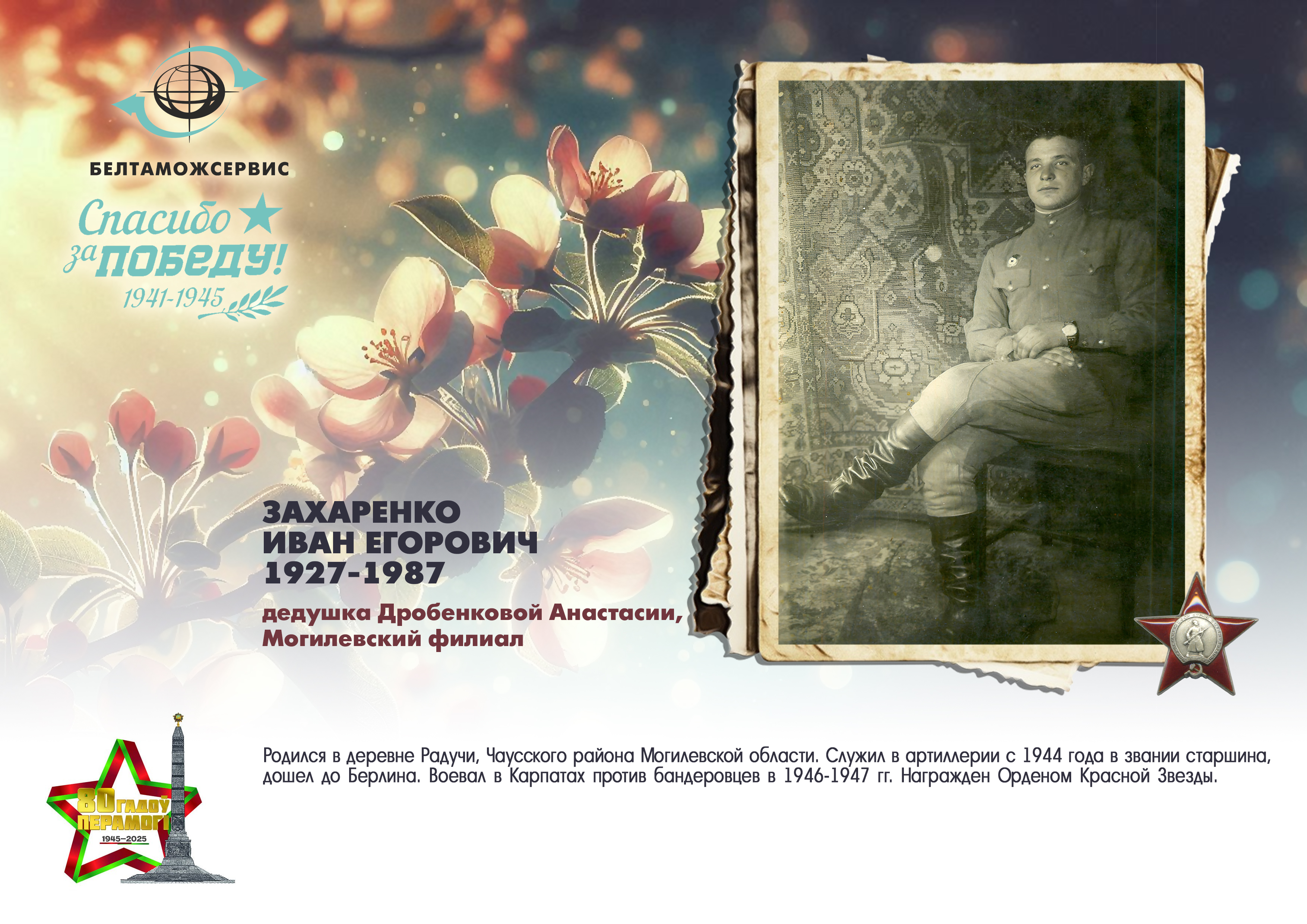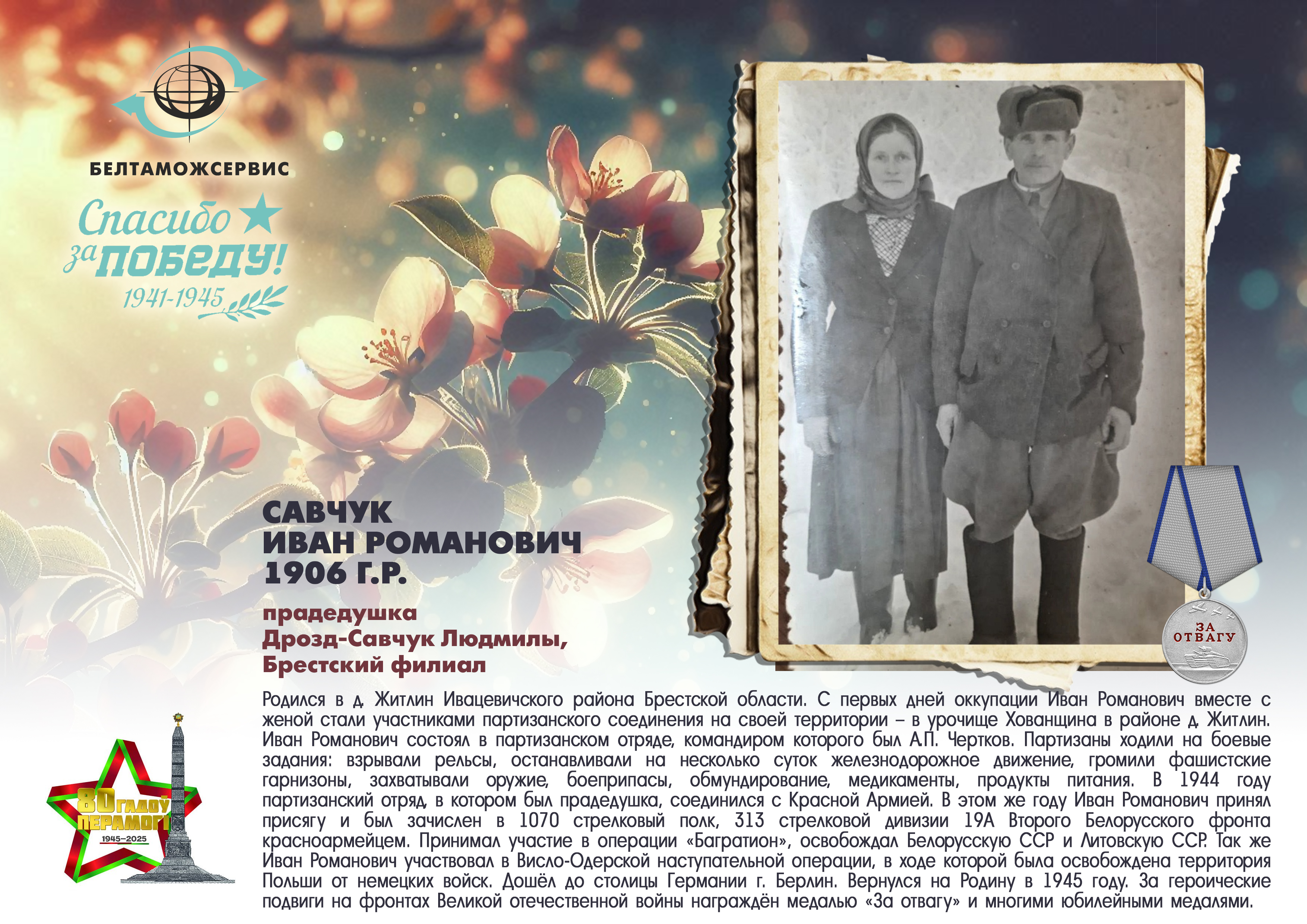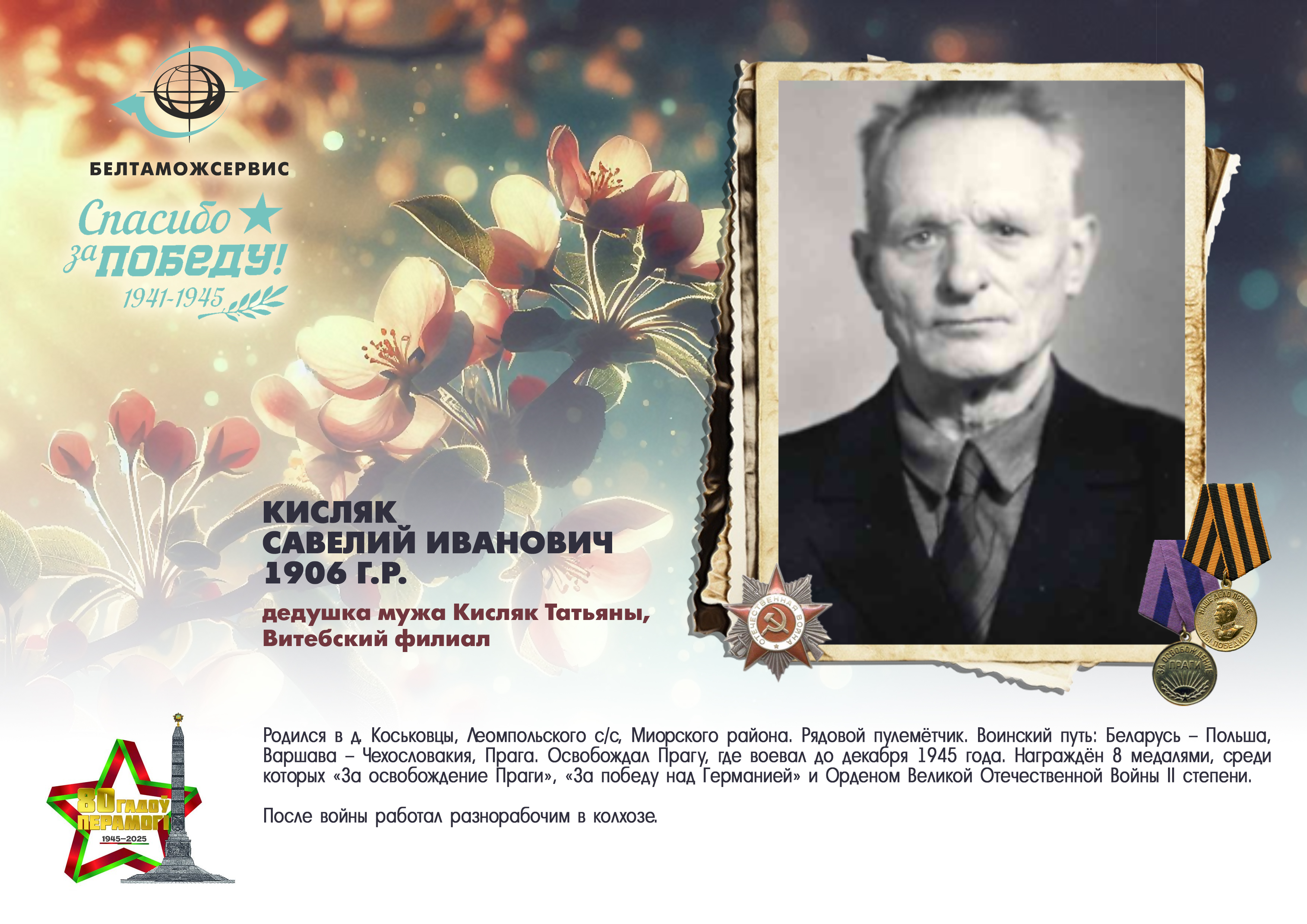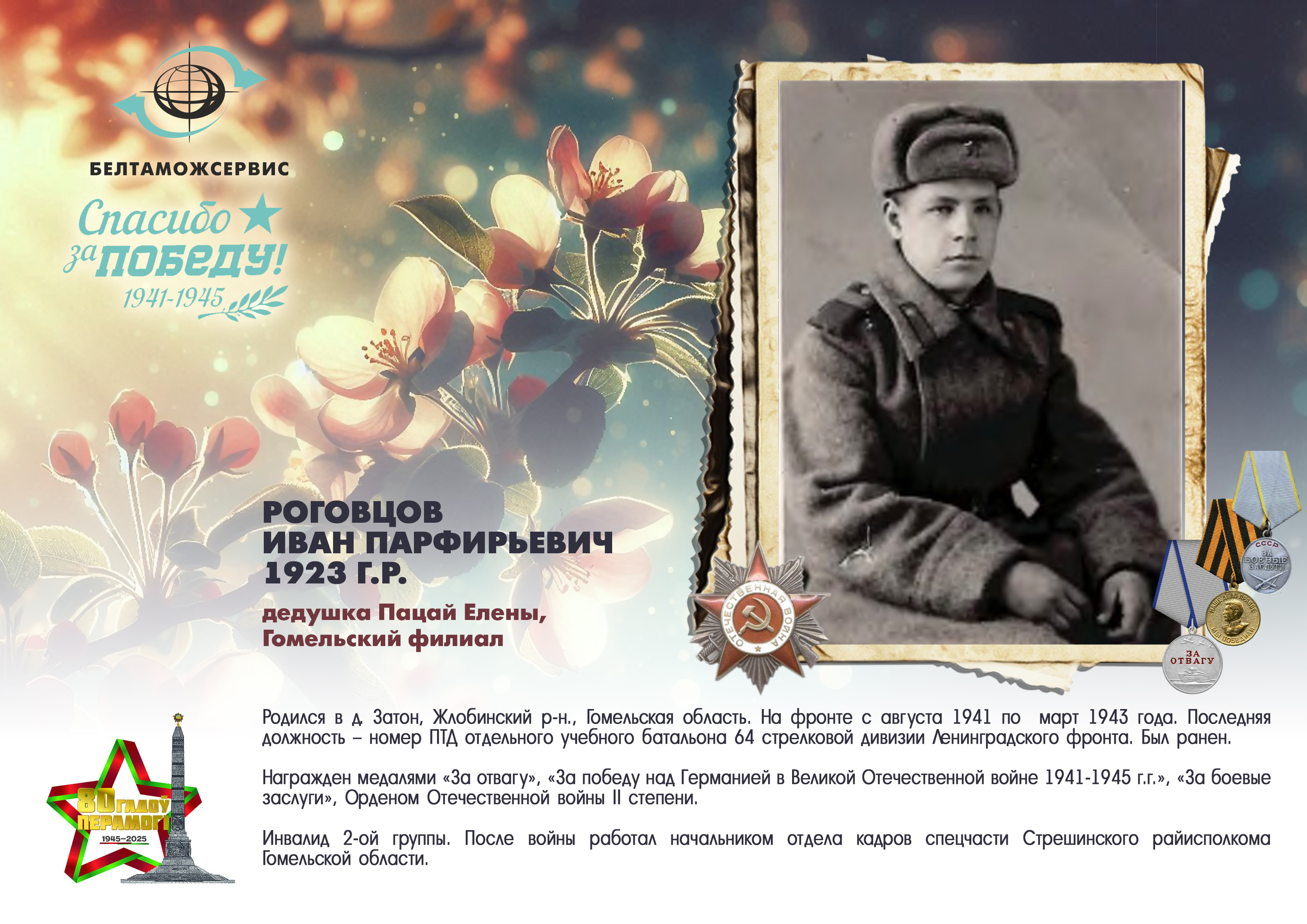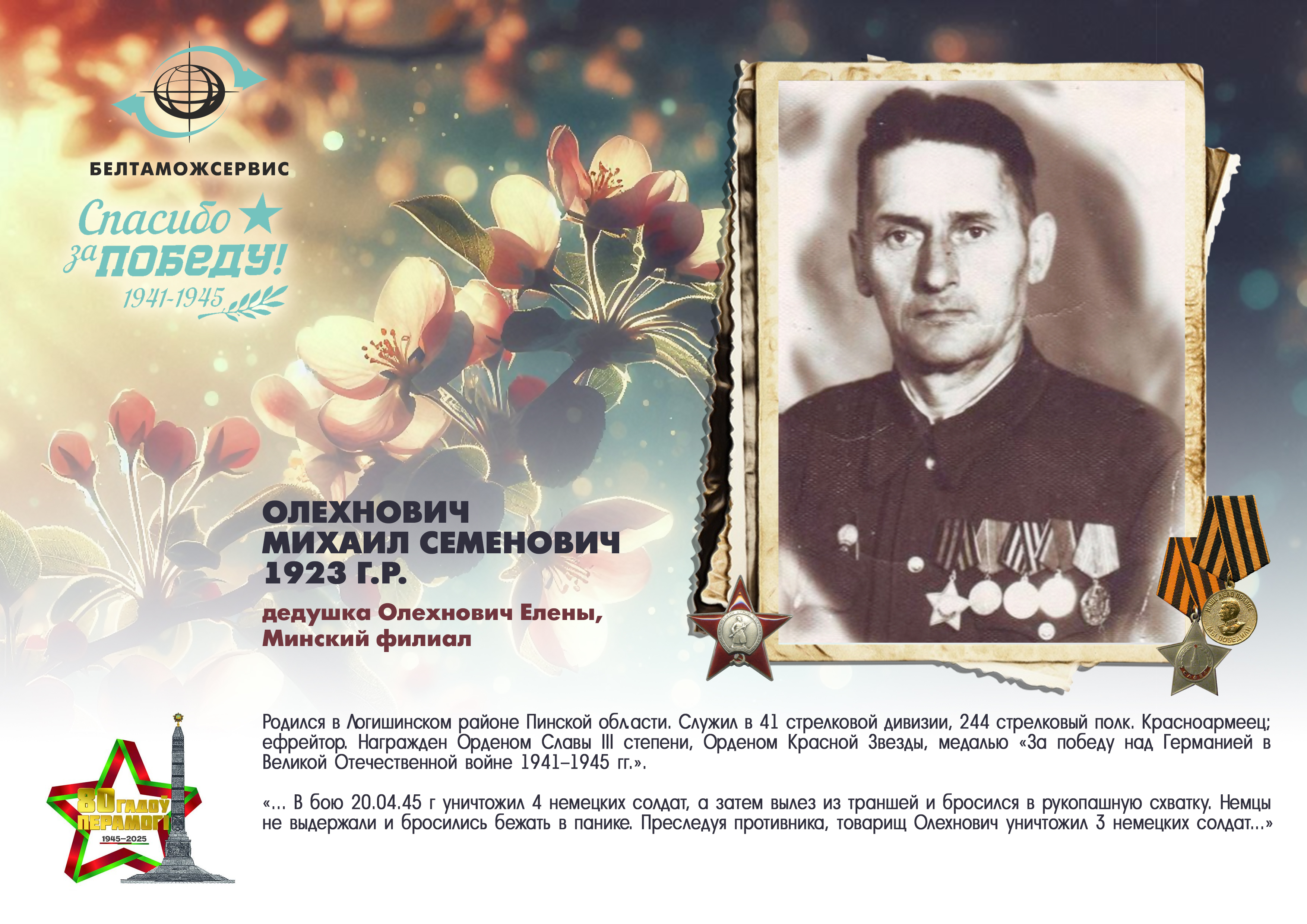 Пережитая трагедия, память о своих родных и гордость за их героические подвиги – в электронной выставке «Знают и помнят потомки: 80 лет Великой Победы», которую подготовили работники РУП «Белтаможсервис».