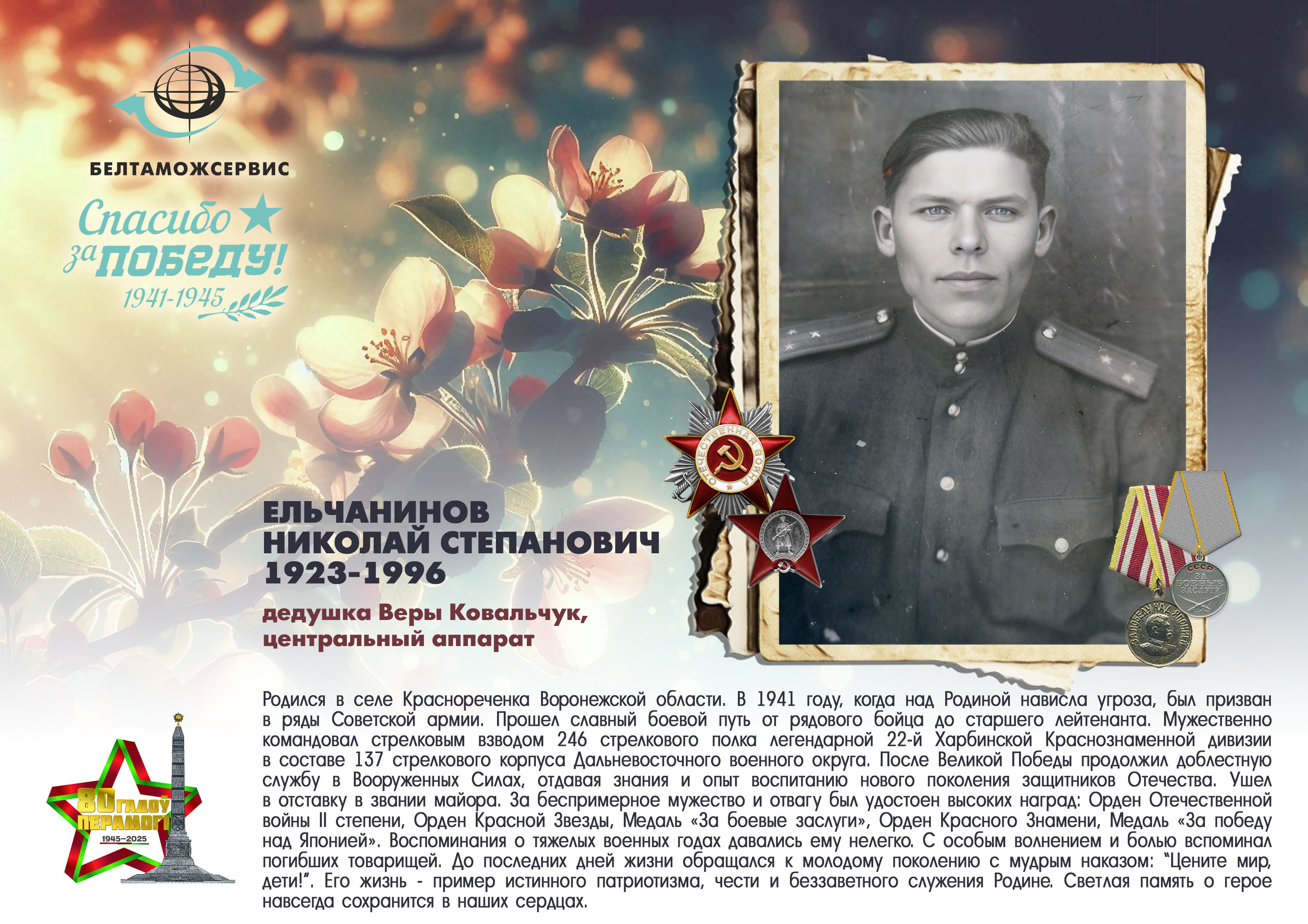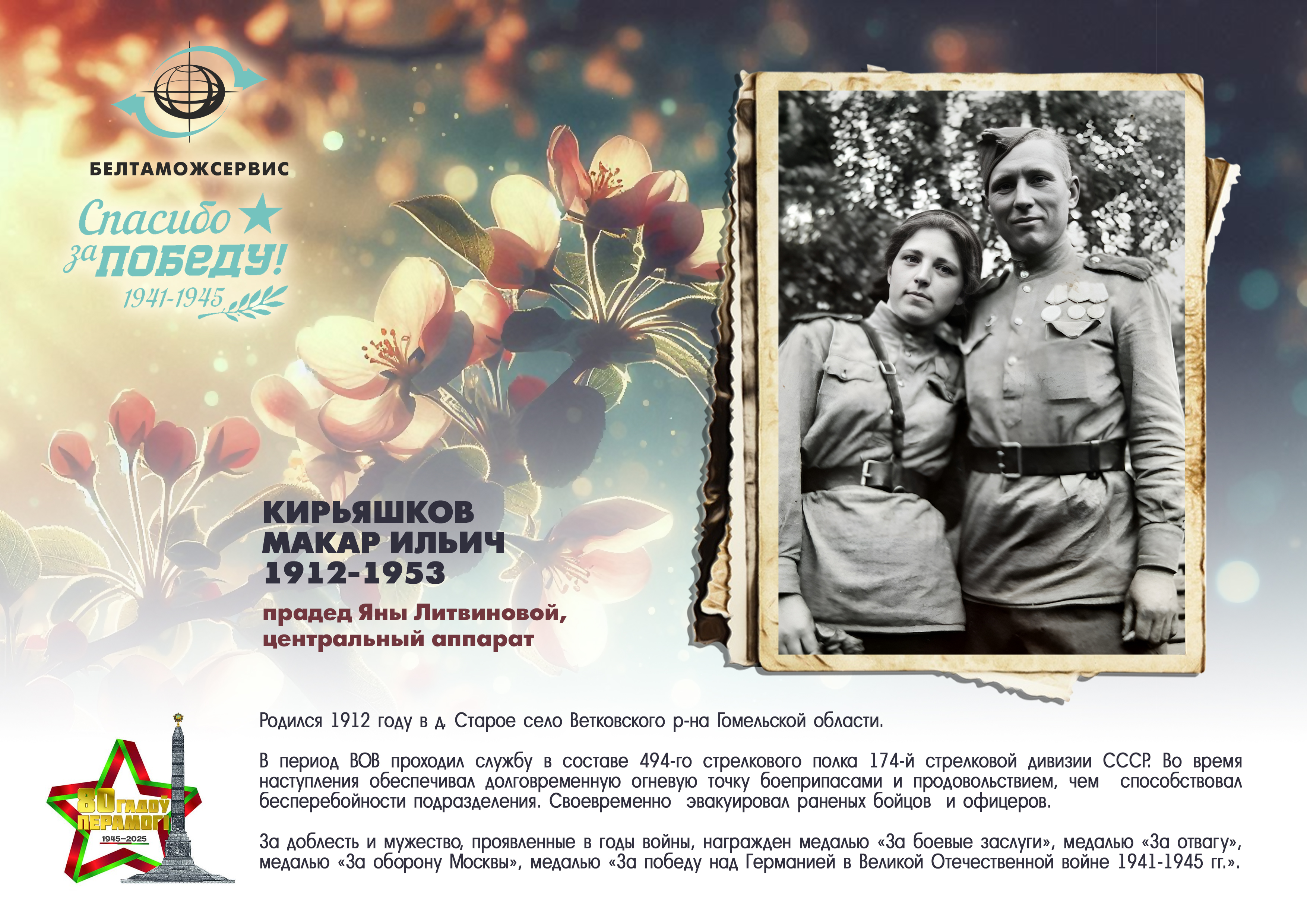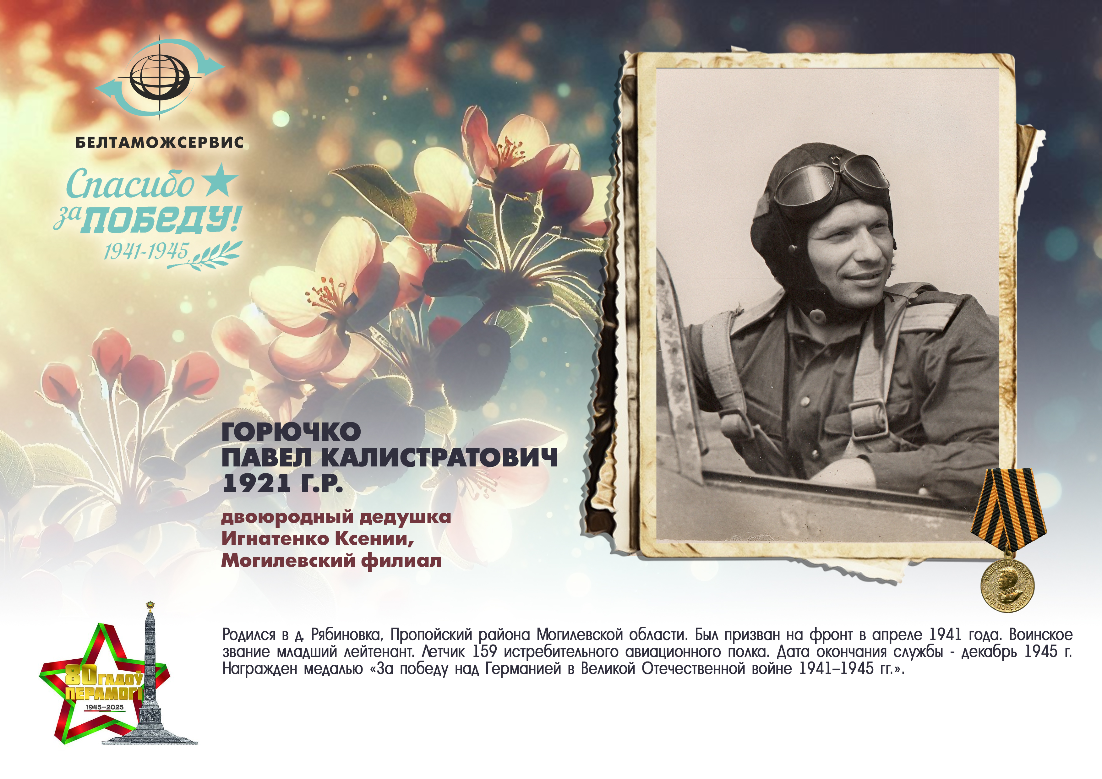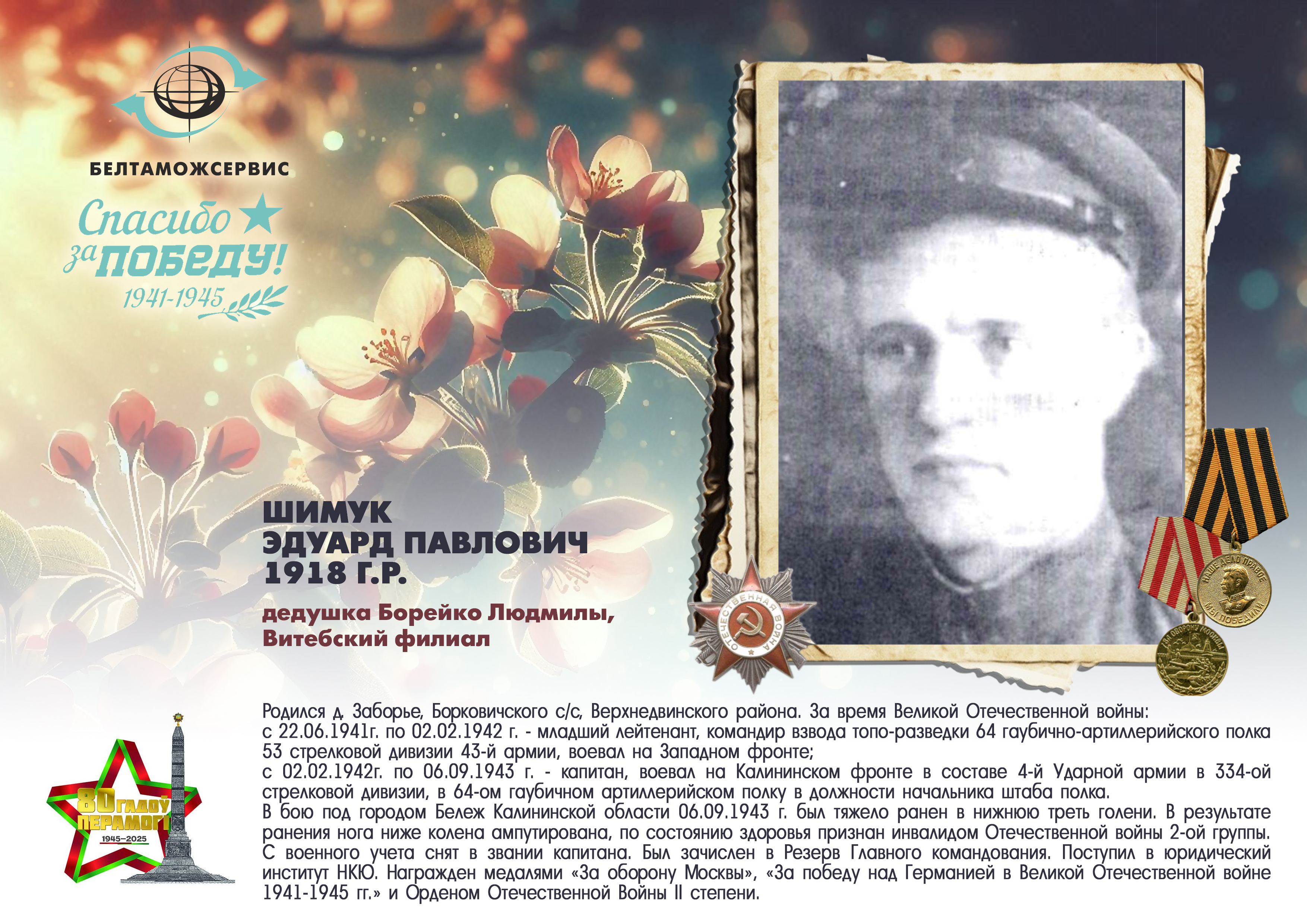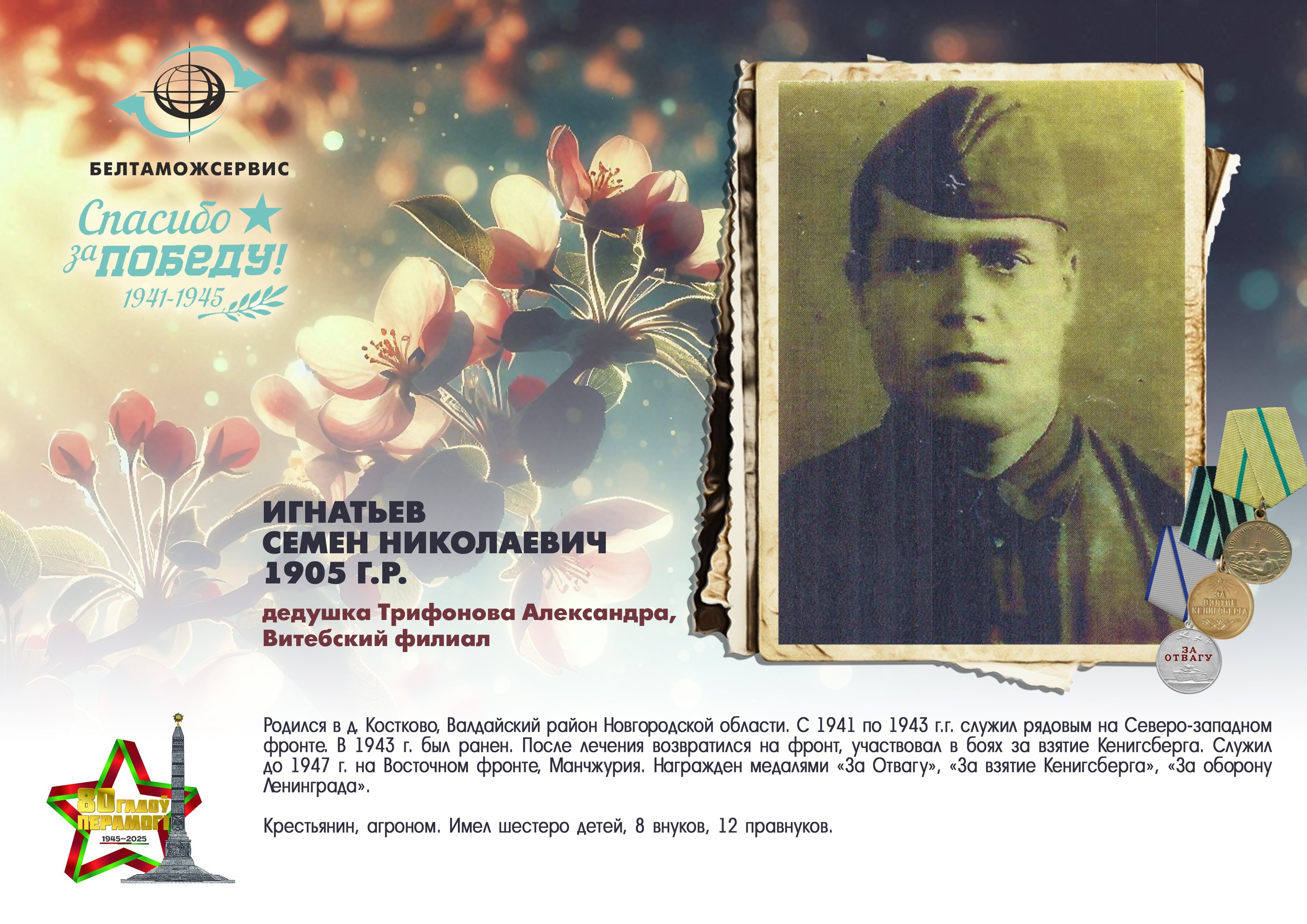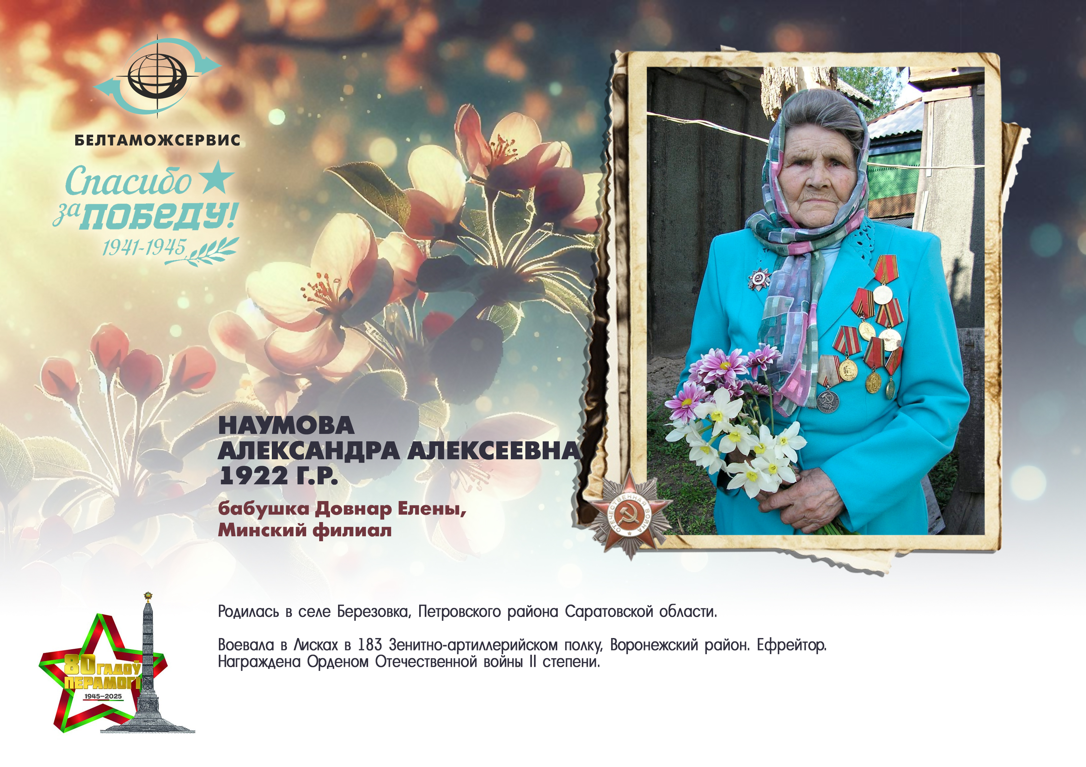 Пережитая трагедия, память о своих родных и гордость за их героические подвиги – в электронной выставке «Знают и помнят потомки: 80 лет Великой Победы», которую подготовили работники РУП «Белтаможсервис».