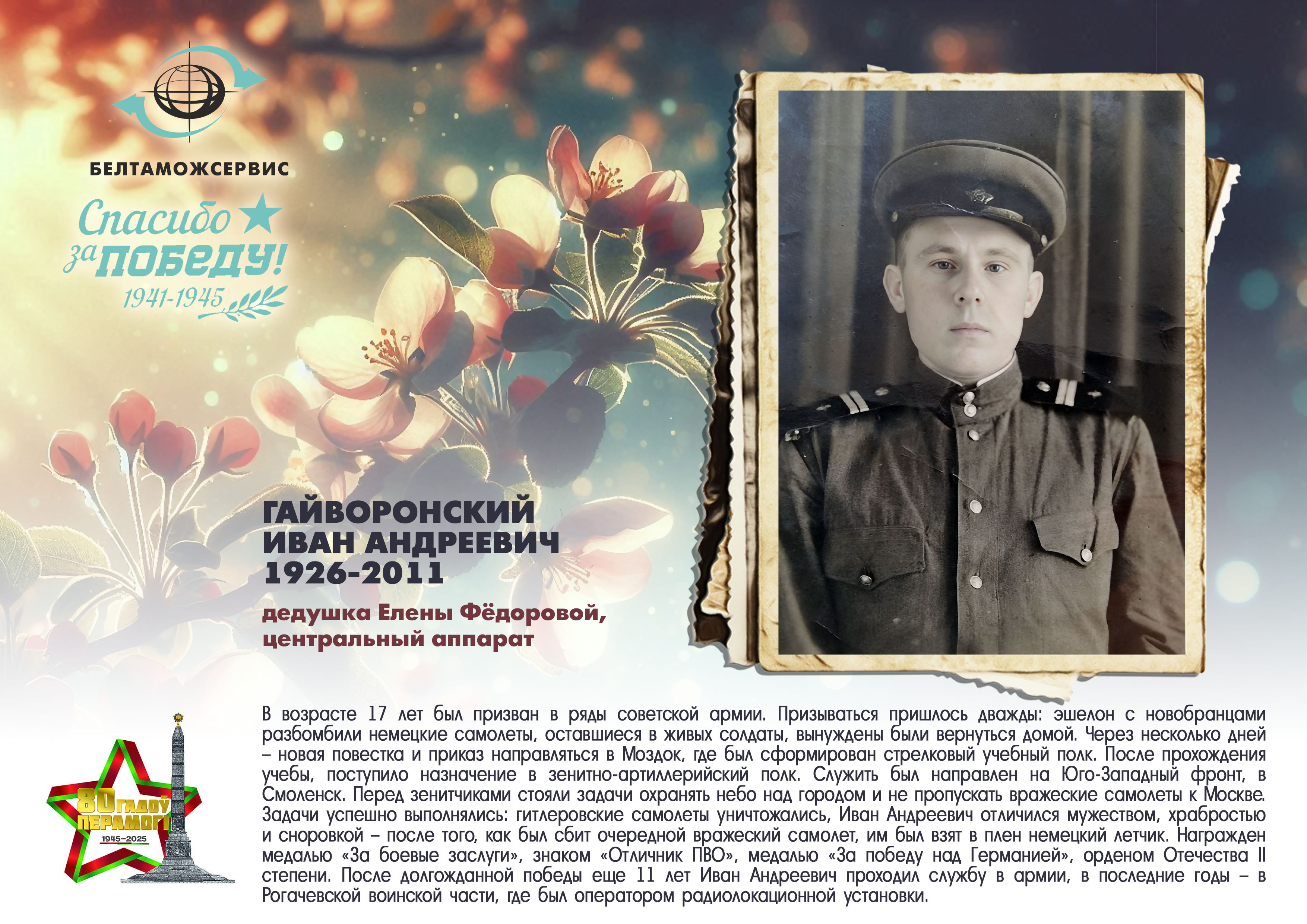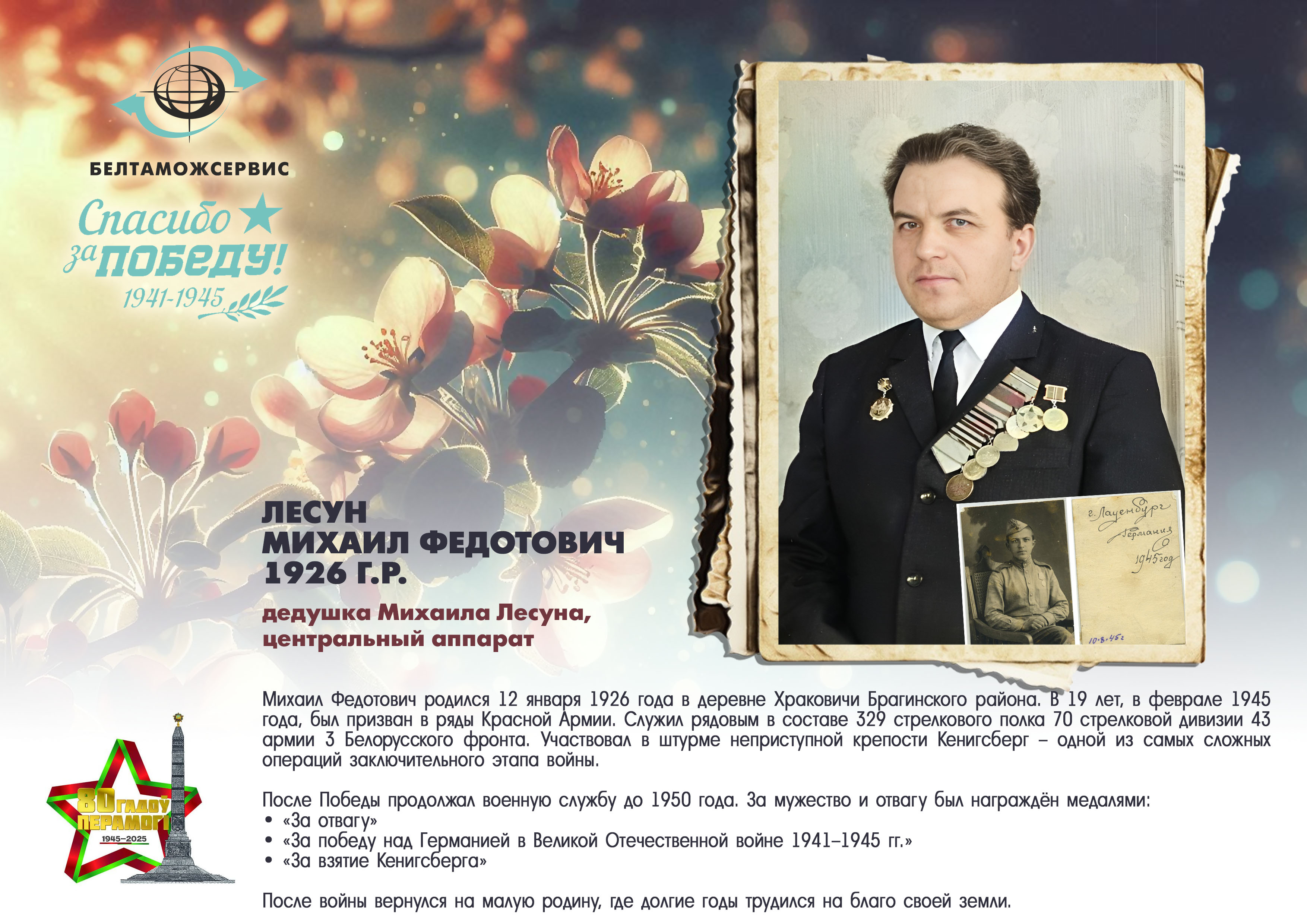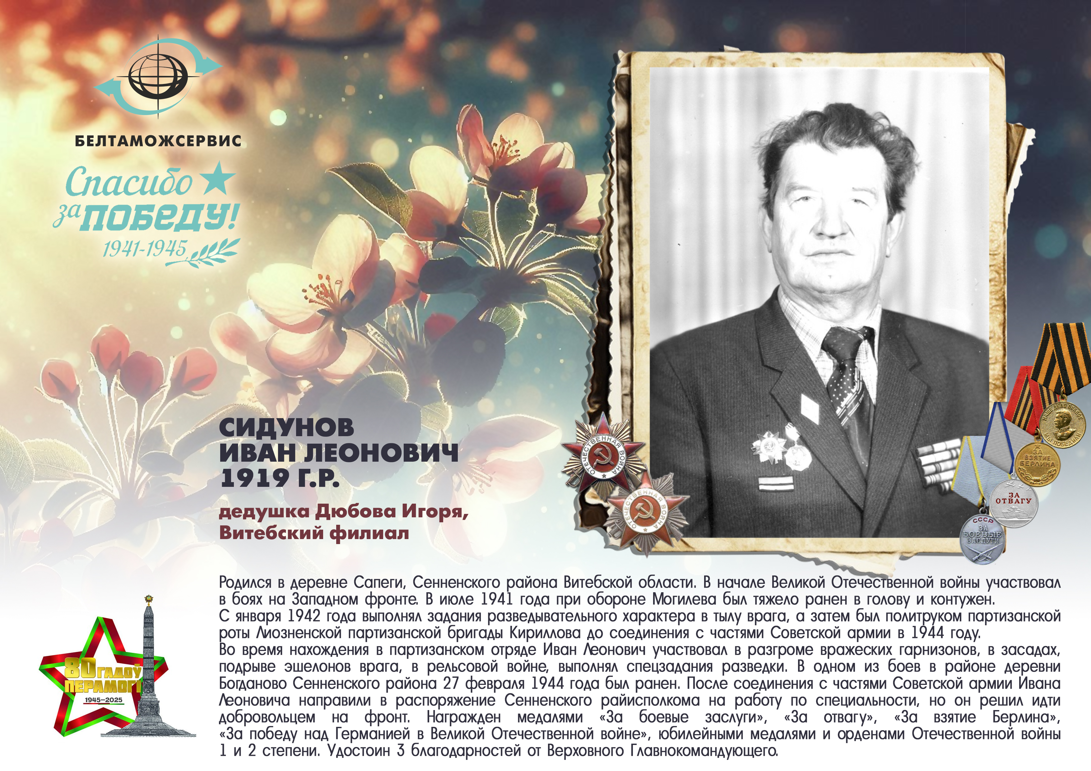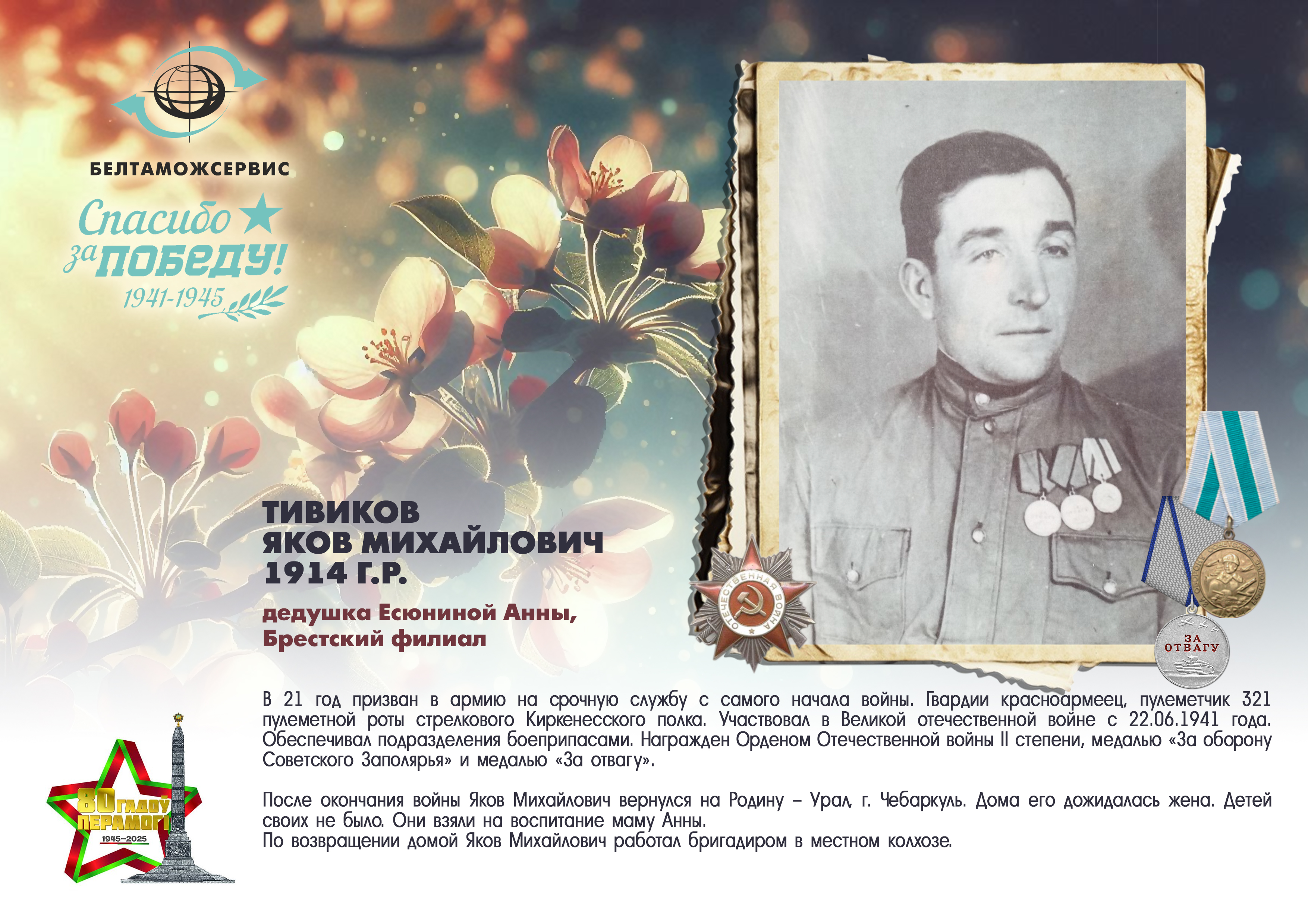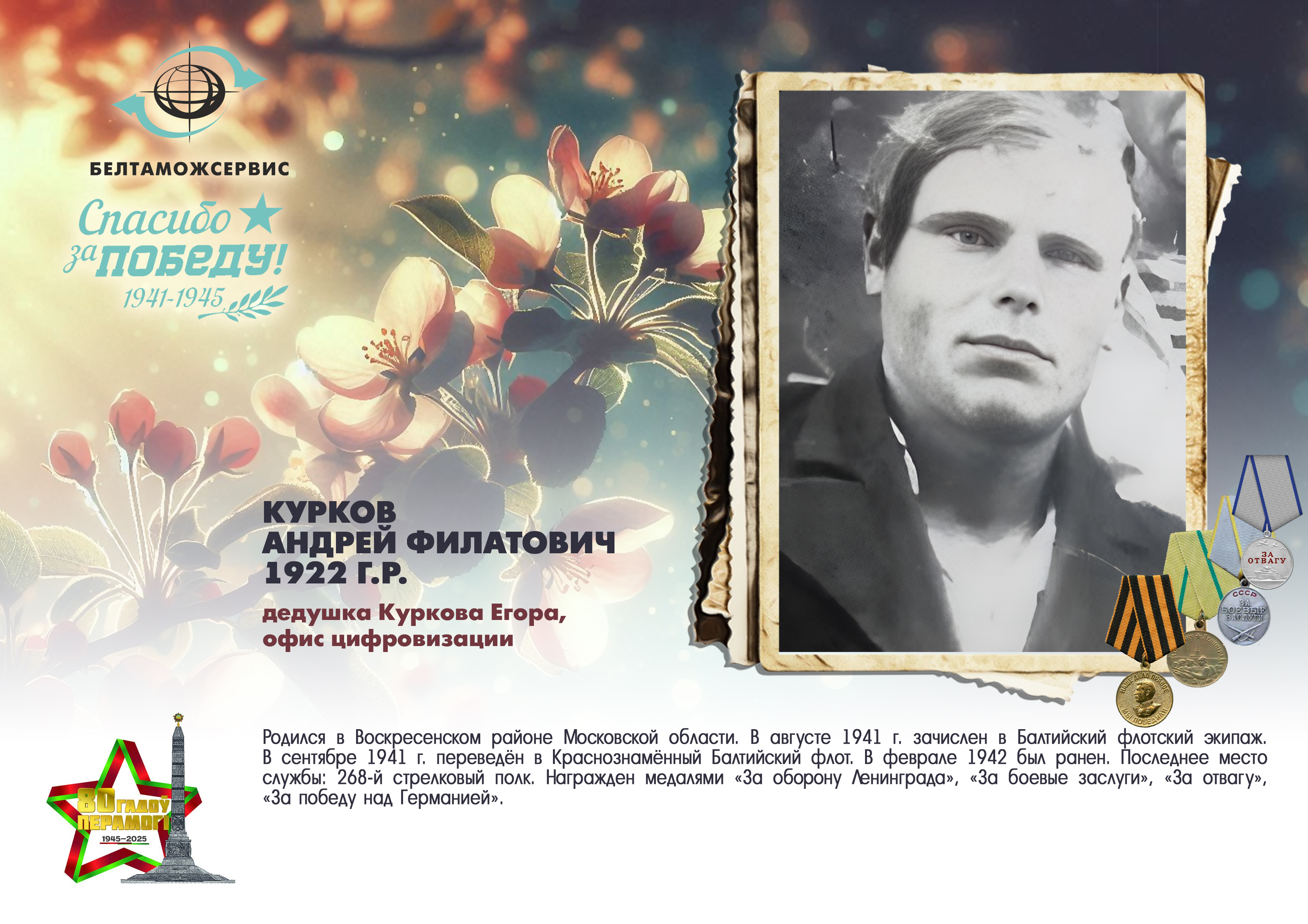 Пережитая трагедия, память о своих родных и гордость за их героические подвиги – в электронной выставке «Знают и помнят потомки: 80 лет Великой Победы», которую подготовили работники РУП «Белтаможсервис».