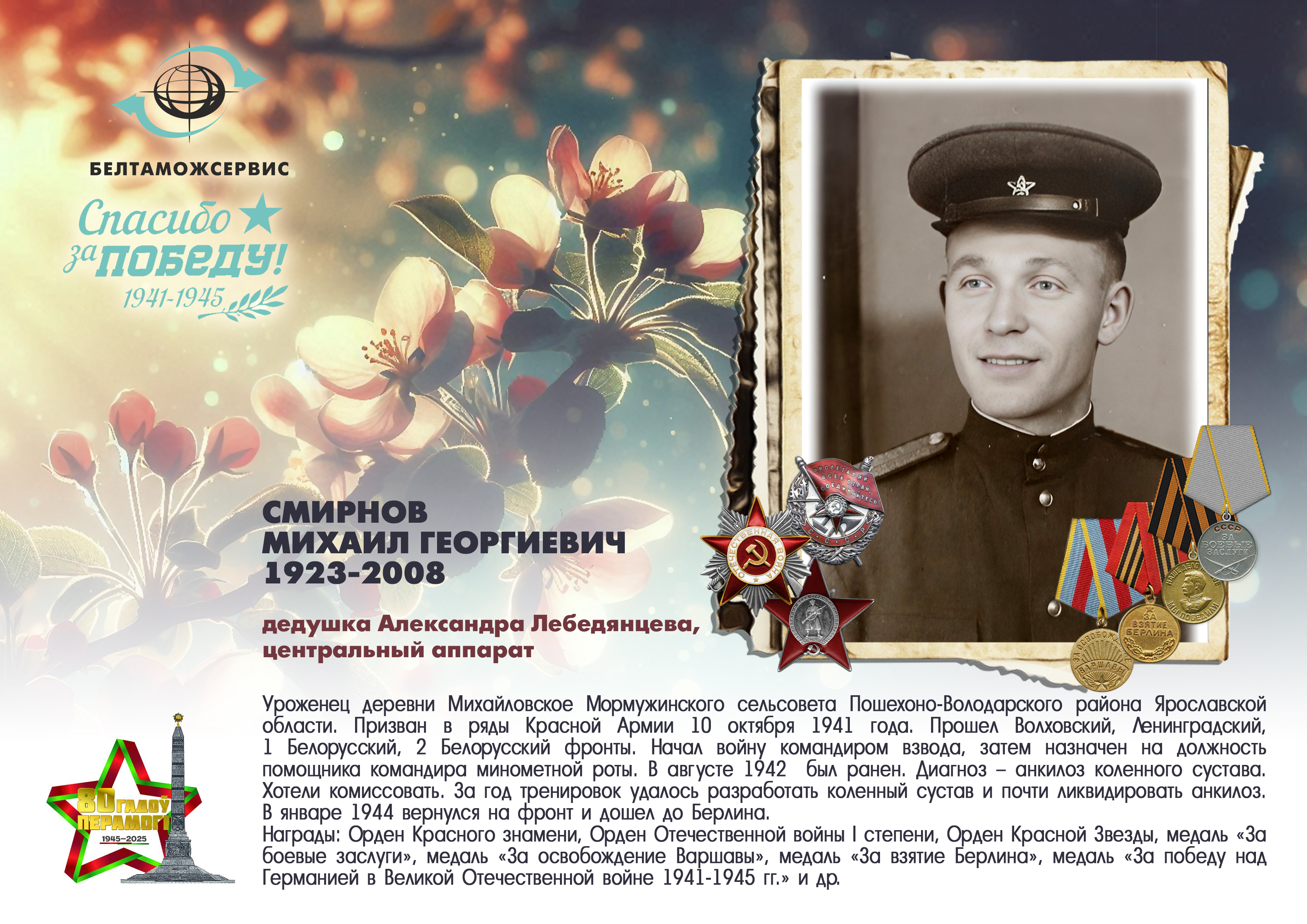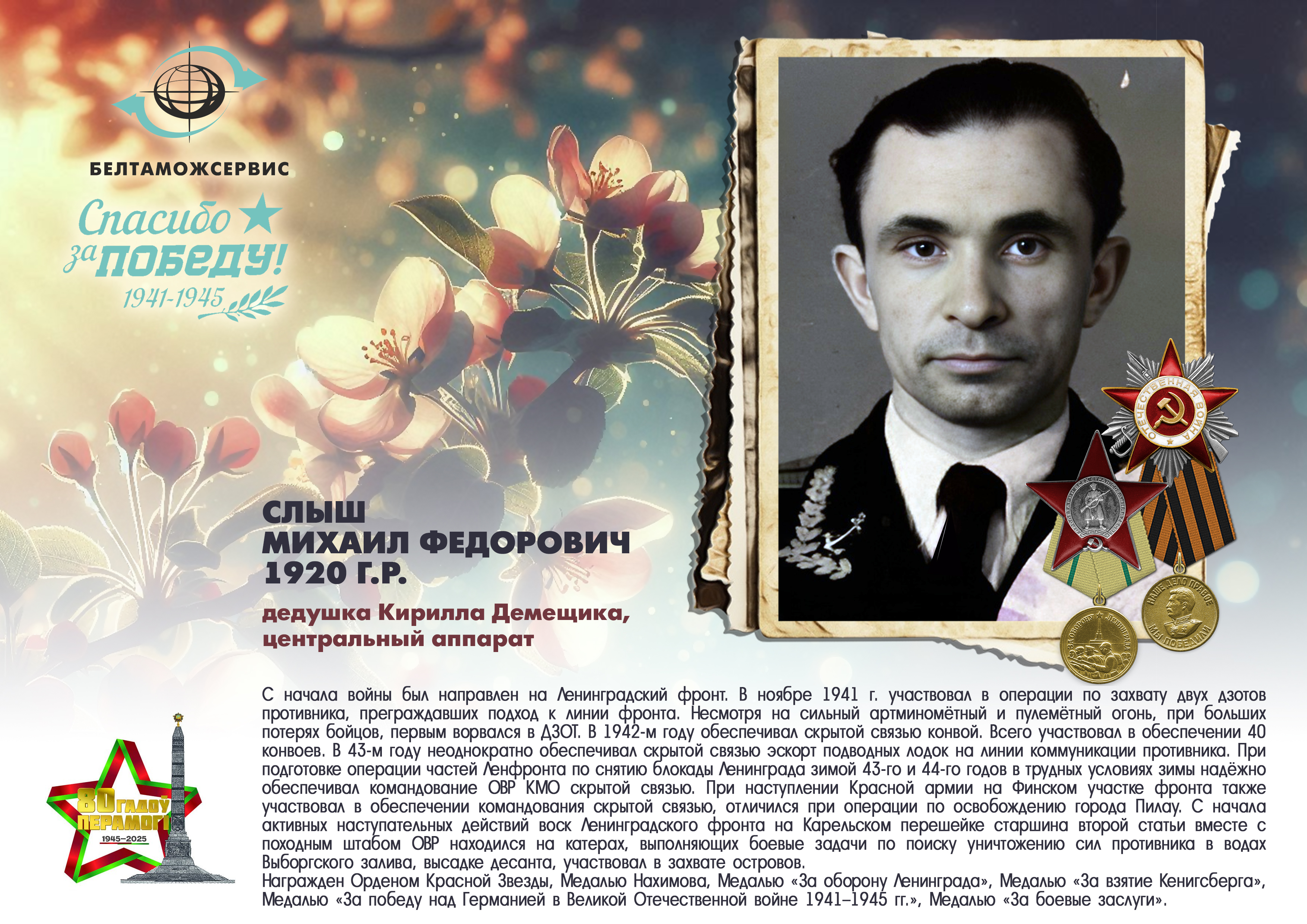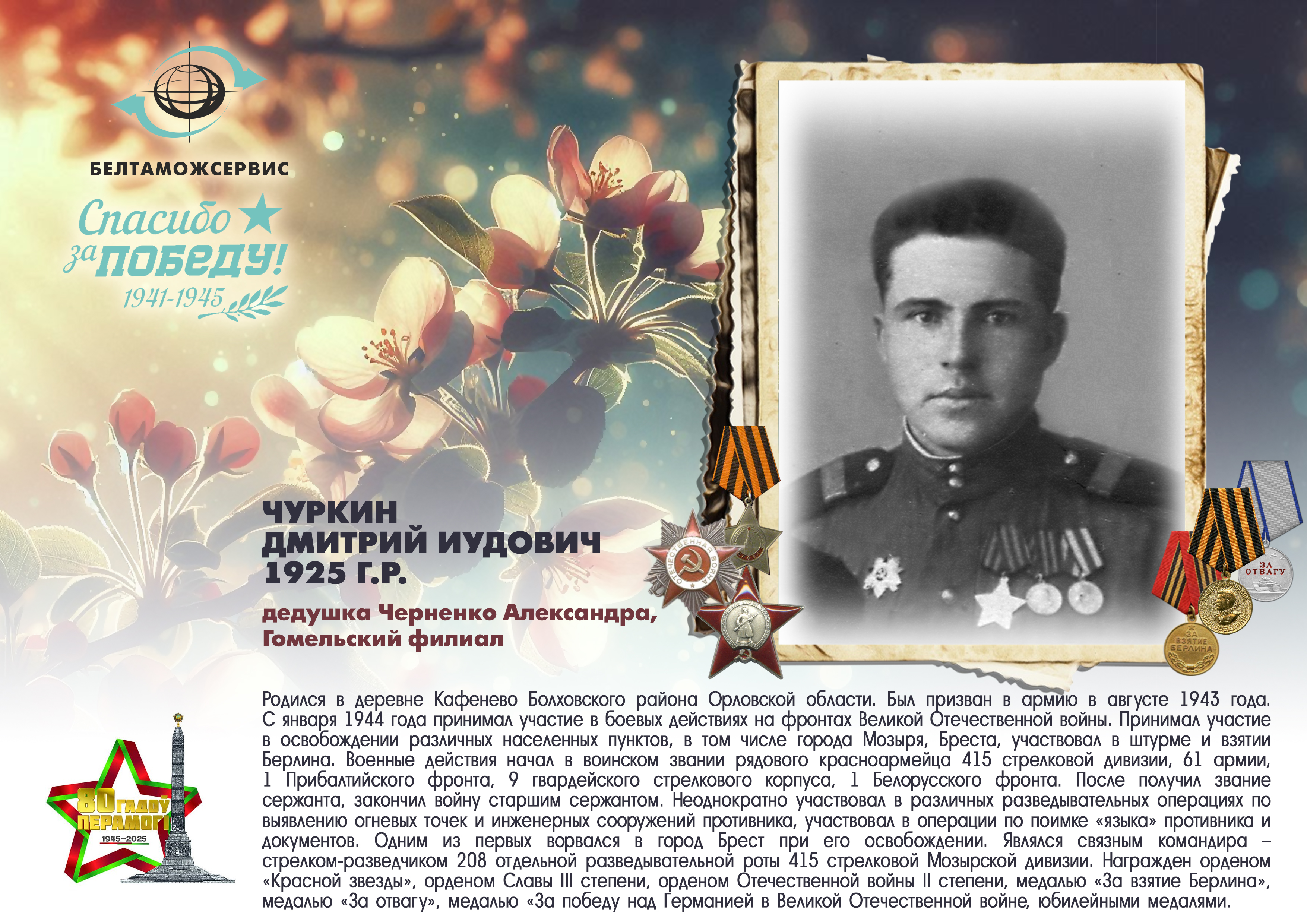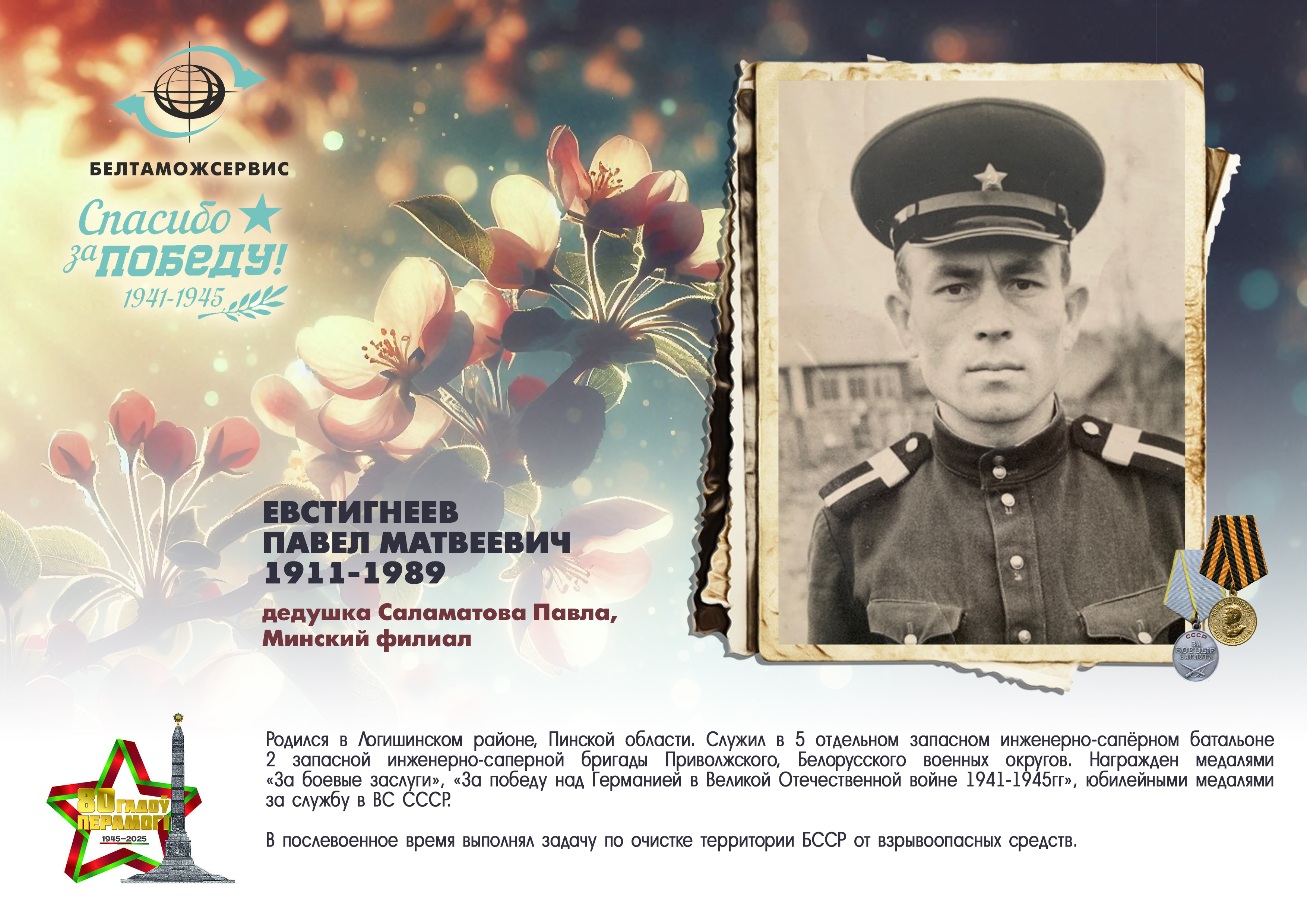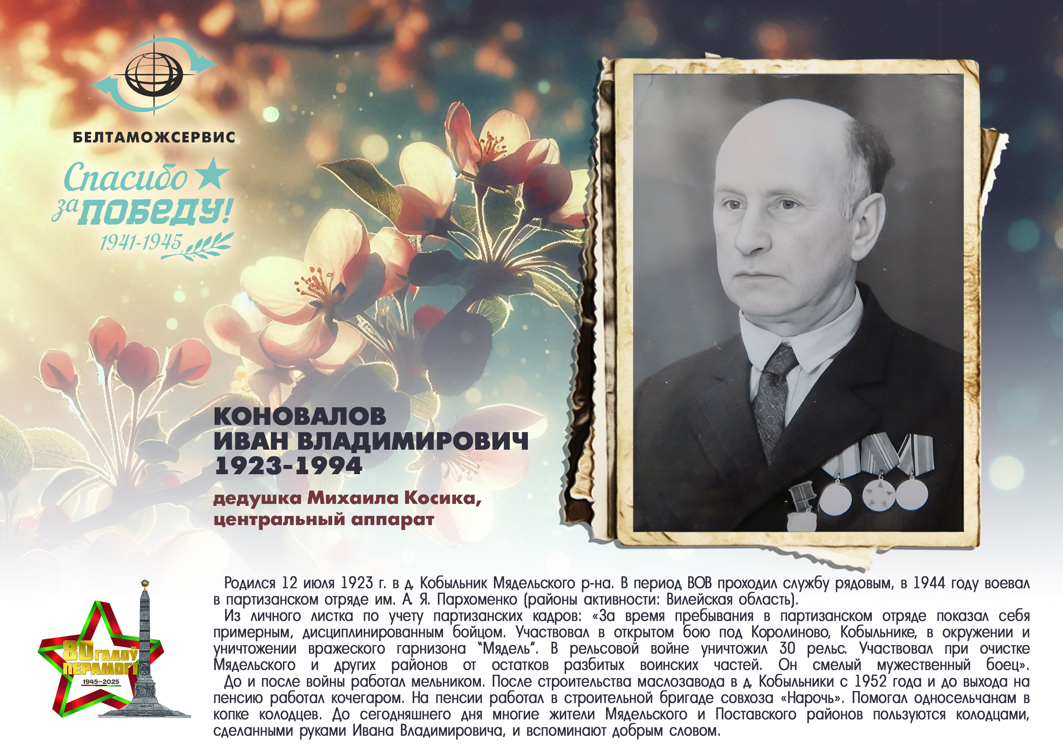 Пережитая трагедия, память о своих родных и гордость за их героические подвиги – в электронной выставке «Знают и помнят потомки: 80 лет Великой Победы», которую подготовили работники РУП «Белтаможсервис».